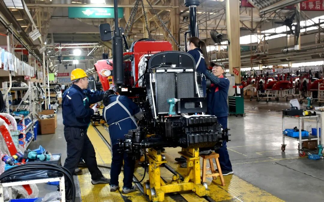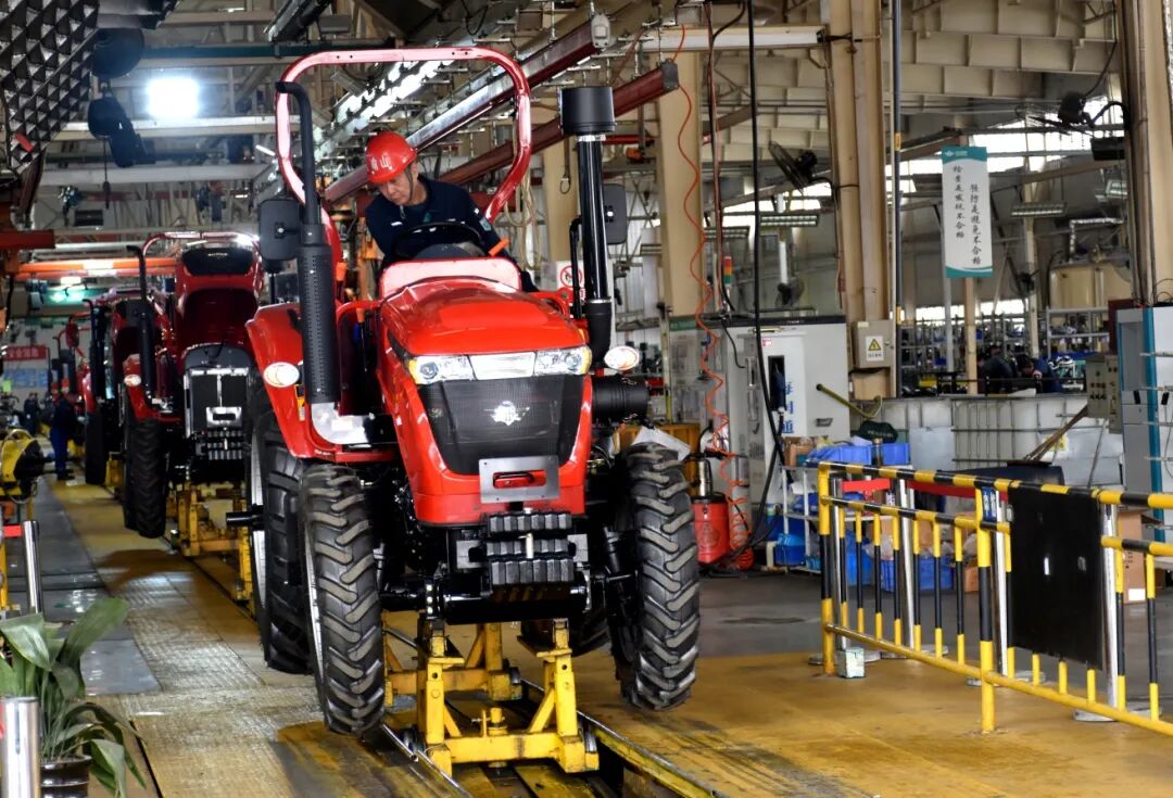 生产车间里,员工正一丝不苟地组装着一台台拖拉机。从生产到下线、从调试到发运,每个环节都争分夺秒。满载中大拖的运输车驶出厂门,驶向全国市场。