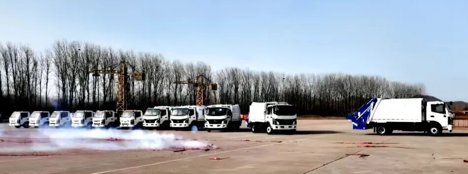 环保科技发车场上,30余辆新能源环卫车整齐列队,驶出厂门奔赴全国市场。同时,2条生产线全面启动,近100辆新能源环卫车的订单正在全力赶制,将陆续发出。
