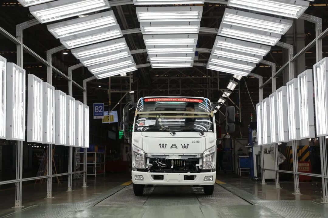 走进飞碟汽车生产厂区,冲压、焊装、涂装、总装等车间已全线运转,机器轰鸣、人影穿梭。总装车间3条流水线开足马力,驾驶室布装、车架布装、发动机安装、轮胎安装……一道道工序有条不紊,平均每4分钟就有一辆飞碟汽车下线。